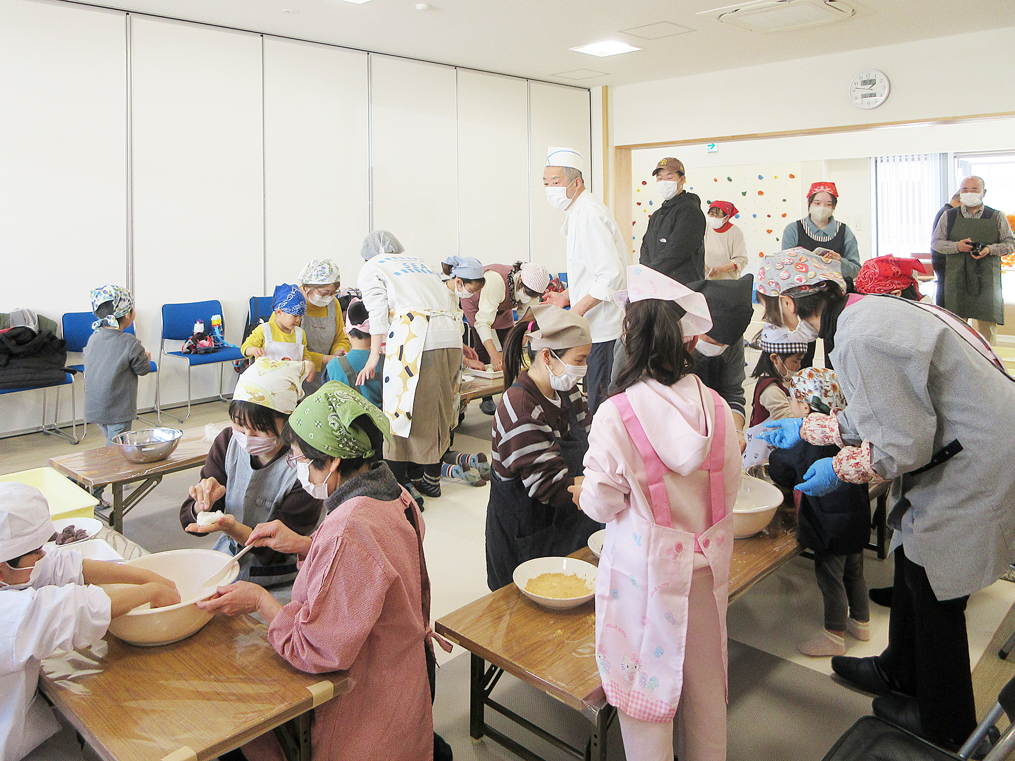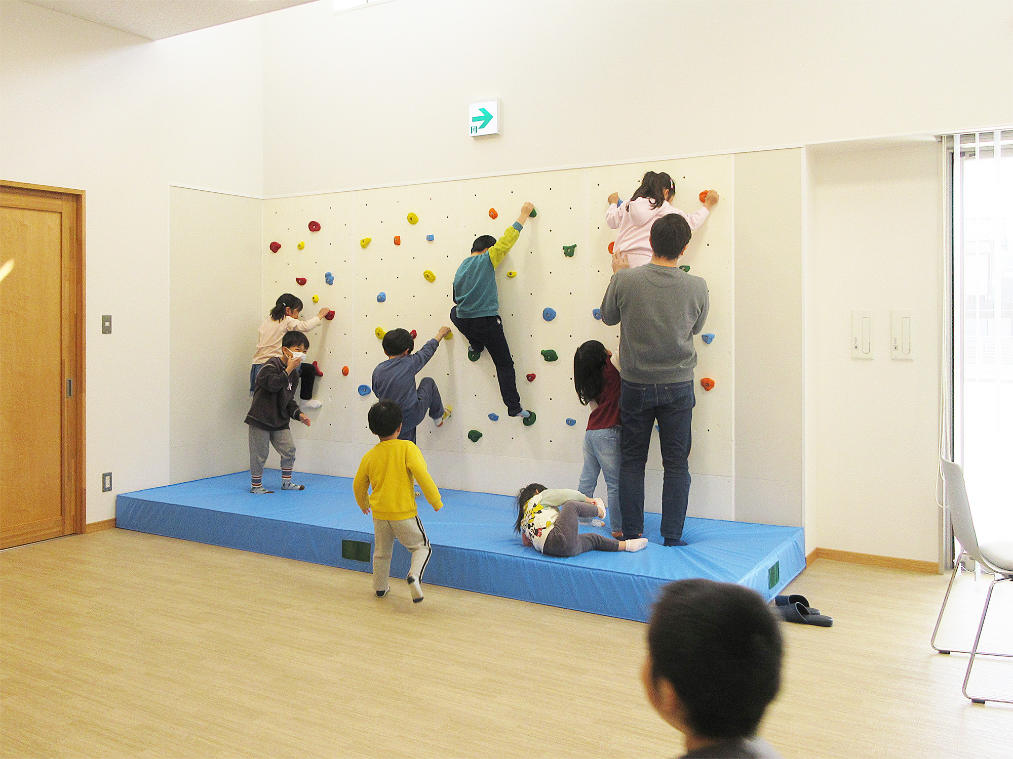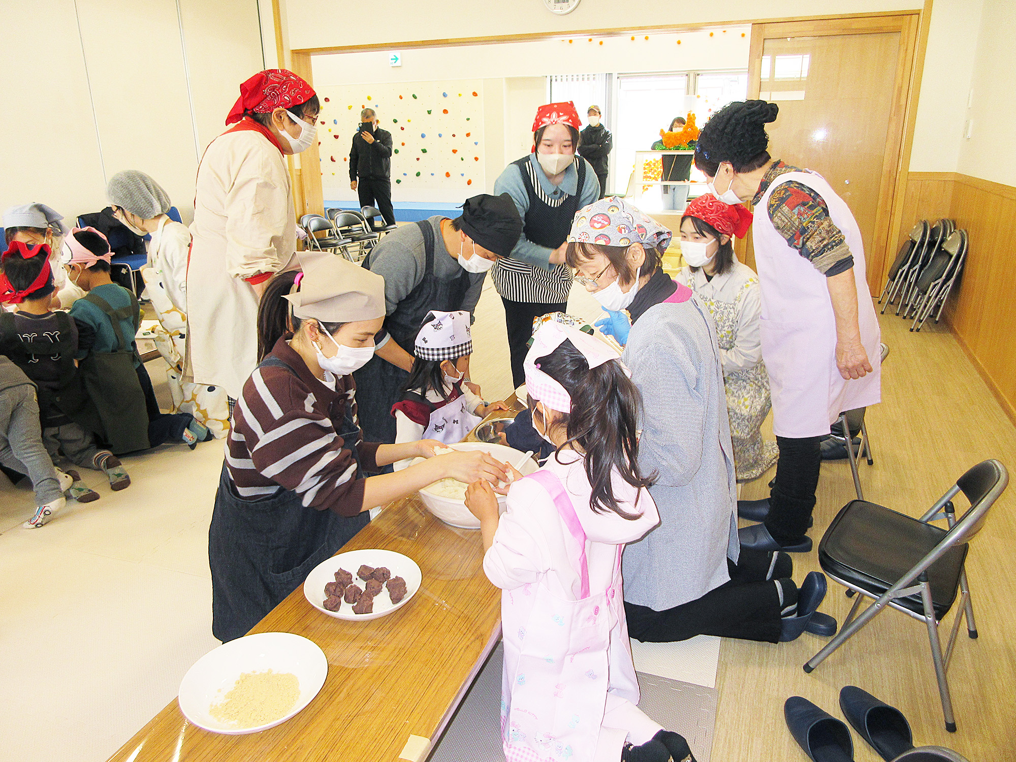 おはぎ作り後は、フリースペースにあるボルダリングを皆で仲良く楽しみました。